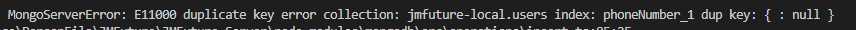 一般我们在创建用户信息表时,常见有phone、email等唯一约束的字段,但是这些字段可能在用户注册时为空的,如果在Schema定义时只有unique: true,在插入数据时将会报错